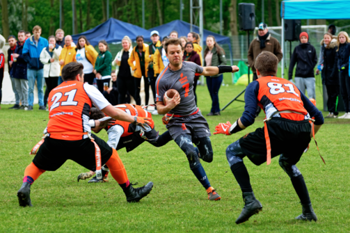 Flag football is een contact vrije vorm van American football en wordt in teams van 5 tegen 5 gespeeld. Het spel is snel, dynamisch en inclusief spel dat door vrijwel iedereen gespeeld kan worden. De basis is eenvoudig te leren. Daarna kun je het zelf zo uitdagend blijven maken als je wil. Internationaal groeit de sport enorm snel. Komende zomer debuteert het tijdens de World Games in Alabama en in 2028 is de sport waarschijnlijk Olympisch tijdens de spelen van Los Angeles.